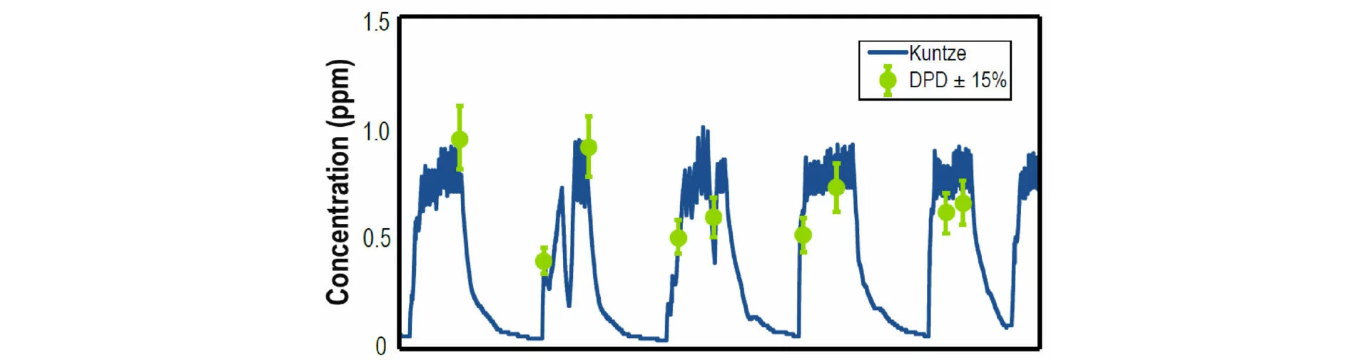 The DPDs match up well with the Kuntze analyzer signal, showing the Krypton® Multi system is capable of accurately measuring oxidant in this application.